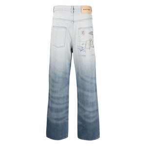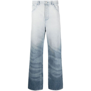 crystal-embellished cotton trousers from Botter featuring blue, cotton, washed denim, faded effect, logo patch to the rear, crystal embellishment, belt loops, front button and zip fastening, classic five pockets and wide leg. Degradè denim jeans Size and Fit - This piece fits true to size. We recommend you get your regular size. Model is 1,84m / 6ft 1in wearing size 48 (IT)