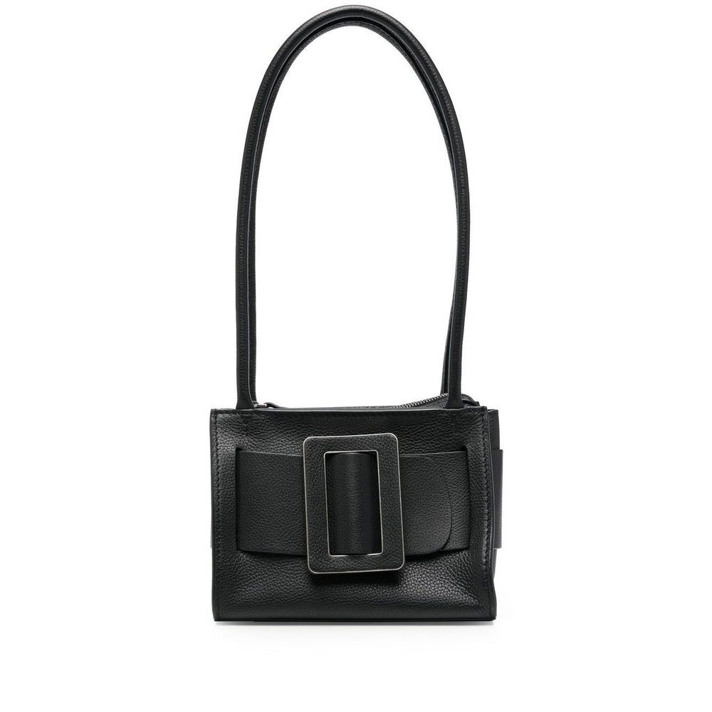 Bobby buckled tote from BOYY featuring black, calf leather, decorative buckle detailing, belted waist, two long top handles and top zip fastening. Bobby 18 Soft leather handbag Size and Fit - Width 7,09 in / 18 cm Height 5,12 in / 13 cm Depth 4,72 in / 12 cm Handle 9,84 in / 25 cm