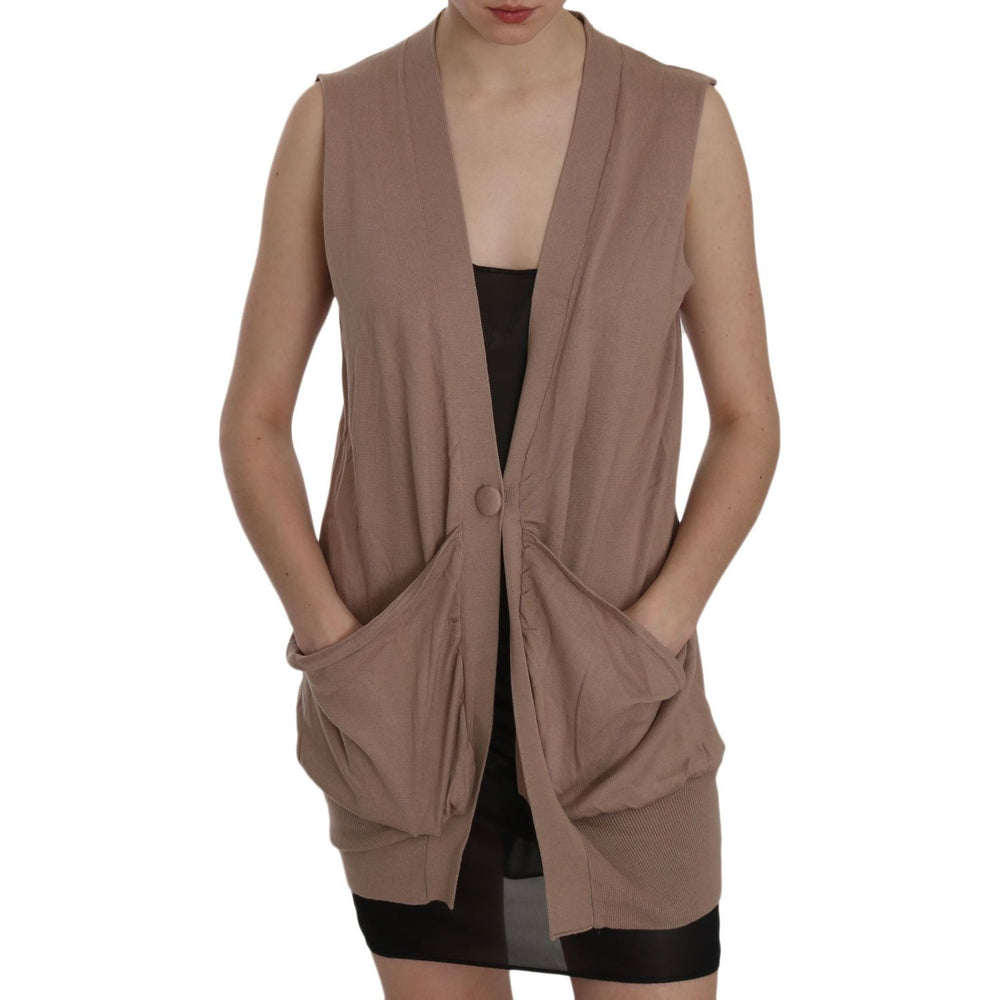 带标签的精美全新PINK MEMORIES无袖开衫,100% 正品。这款别致的背心采用优雅的棕色,非常适合分层搭配,为任何服装增添一丝精致感。采用 100% 纯棉制成,采用一粒扣闭合,两个前袋,并饰有精致的徽标细节。