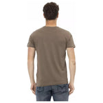 优雅短袖棕色 T 恤,带有独特的印花
