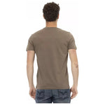Trussardi Action 精心制作的棕色 T 恤让您体验舒适和时尚。它专为现代男士设计,正面印有时尚图案,圆领经典,是休闲时尚的完美之选。