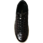 这款精美的低帮运动鞋采用 100% 优质鳄鱼皮制作而成,是奢华鞋履的典范。这款正品 Dolce & Gabbana 运动鞋全新带标签,是您衣橱中的完美之选。这款运动鞋采用经典棕色色调,前部系带,鞋头圆润,中底饰有条纹,完美融合了时尚与舒适。橡胶鞋底确保耐用性和平稳步伐。这款意大利杰作将为您的鞋履收藏锦上添花。