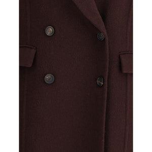 Brunello Cucinelli’s double-breasted coat is a masterpiece of elegance and understatement. Featuring peaked lapels and a front button closure, this coat offers a sophisticated and formal silhouette. The two front welt flap pockets add a functional and stylish touch, completing an impeccable design that is perfect for a refined and timeless look. Ideal for the colder seasons, it is a garment that combines warmth and luxury.