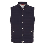 navy blue quilted design snap fastening high neck side pockets sleeveless Nylon down vest