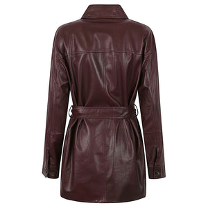 Leather jacket, long sleeves, button fastening, pointed collar and belt at the waist. Leather jacket Size and Fit - This piece fits true to size. We recommend you get your regular size. Model is 1,75m / 5ft 8in wearing size 40 (IT)