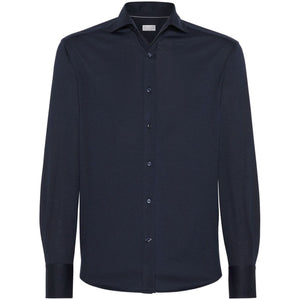 blue long sleeves front button fastening buttoned cuffs straight hem Silk and cotton blend shirt