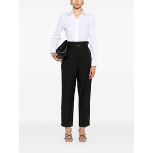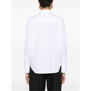 white cotton blend poplin texture pointed flat collar signature Monili chain detail long sleeves buttoned cuffs curved hem concealed front button fastening Cotton shirt Size and Fit - This piece fits true to size. We recommend you get your regular size. Model is 1,75m / 5ft 8in wearing size S