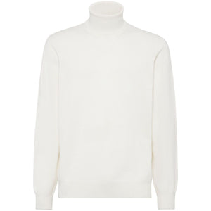 white cashmere knitted construction roll neck long sleeves ribbed cuffs ribbed hem Cashmere turtle-neck jumper