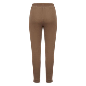 brown elasticated waistband side pockets tapered leg Cotton and silk blend trousers Size and Fit - This piece fits true to size. We recommend you get your regular size. Model is 1,75m / 5ft 8in wearing size S