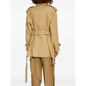 beige cotton gabardine weave classic collar epaulettes long sleeves belted waist belted cuffs straight hem Cotton trench coat Size and Fit - This piece fits true to size. We recommend you get your regular size. Model is 1,75m / 5ft 8in wearing size 8 (UK)