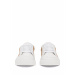 optic white/archive beige calf leather Vintage Check pattern panelled design front lace-up fastening round toe branded heel counter flat rubber sole Check leather sneakers Size and Fit - Heel 0,8 in / 2 cm