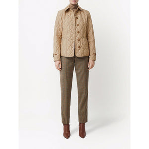 Beige diamond-quilted jacket from BURBERRY featuring diamond quilting, classic collar, front button fastening, long sleeves, belted cuffs, two front patch pockets, straight hem and Vintage Check-pattern lining. Quilted jacket Size and Fit - This piece fits true to size. We recommend you get your regular size. Model is 1,75m / 5ft 8in wearing size S