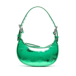 metallic-effect tote bag from BY FAR featuring green, metallic effect, top zip fastening, main compartment and single top handle. Mini Soho metallic leather shoulder bag Size and Fit - Width 7,48 in / 19 cm