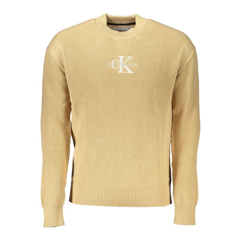 LONG SLEEVED SWEATER, CREW NECK, CONTRAST DETAILS, EMBROIDERY, LOGO, 95% TRANSITIONAL COTTON