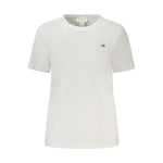 Embrace timeless style with a twist in this Calvin Klein crew neck T-shirt. Crafted from pure cotton for unparalleled comfort, its sleek white silhouette is elevated by the iconic logo delicately embroidered for that touch of elegance. Whether you’re dressing up for a casual outing or layering for an evening look, this versatile piece will serve as a statement in your wardrobe.
