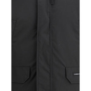 Canada Goose ChilliWack Bomber Jacket by Canada Goose, high collar with drawstring-adjustable hood, front closure by concealed zipper and snap buttons, two side welt pockets, elastic ribbed cuffs, ribbed hem, contrasting applied iconic brand monogram patch on left sleeve, two front pockets with snap button closure, padded monochrome design, regular fit.