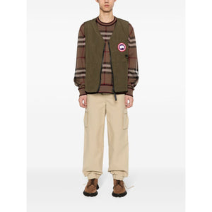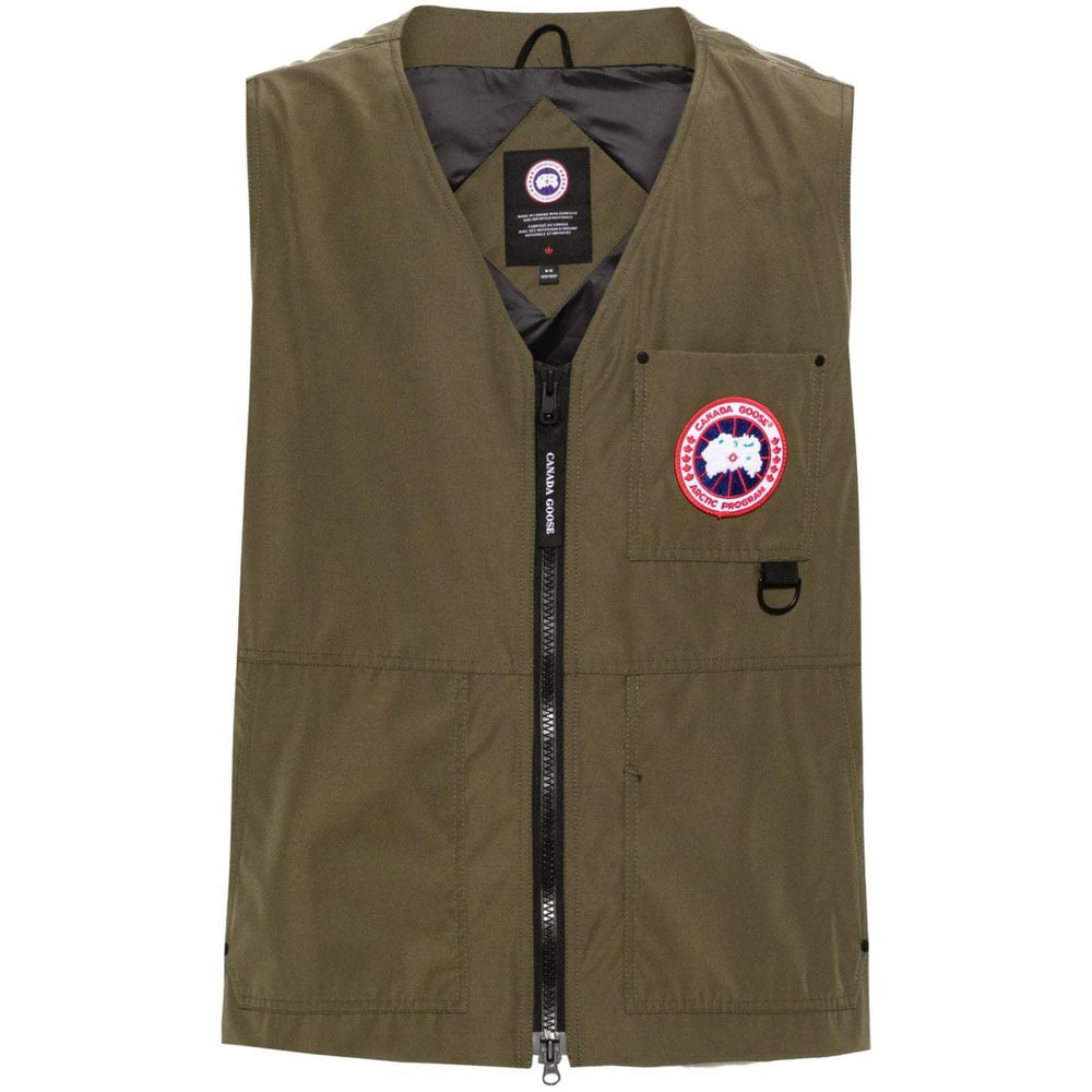 khaki lightweight construction V-neck sleeveless chest patch pocket appliqué logo two side zip-fastening pockets reflective detailing to the rear rear grosgrain ribbon trim with embroidered logo full lining straight hem front two-way zip fastening Canmore down vest Size and Fit - This piece fits true to size. We recommend you get your regular size. Model is 1,84m / 6ft 1in wearing size M