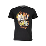 Unleash the essence of high-end casual chic with this Cavalli Class masterpiece. A black tee that reinterprets everyday luxury, featuring a bold print and the iconic Cavalli Class logo, which stands out with its unmistakable flair. Crafted with the finest cotton for supreme comfort, it is the perfect staple for the style-savvy individual. Elevate your wardrobe with a piece that speaks the language of contemporary elegance.