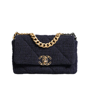 This stunning Chanel 19 Medium bag in dark blue tweed is a true statement piece, offering both sophistication and style. Known for its iconic design and luxurious craftsmanship, this bag is part of Chanel’s coveted 19 collection, characterized by its relaxed yet refined aesthetic. The medium size is perfect for everyday use, offering just the right amount of space for your essentials while maintaining a chic and versatile look.