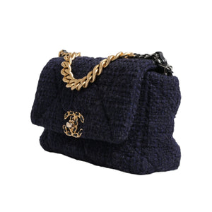 Chanel Dark Blue Medium Flap Tweed CC Gold Gray Chain Shoulder Bag