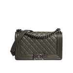 This Chanel Boy Bag in size Medium in gorgeous green leather.