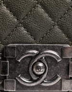 Chanel Dark Green Leather Shoulder Bag Gray Metal Purse Bag