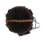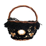别致的米色和黑色草编蛇皮水桶包