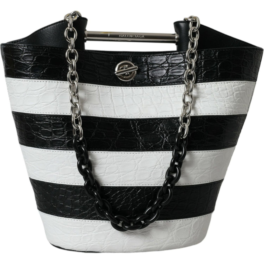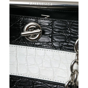 尽情享受 Balenciaga 鳄鱼皮大号水桶包带来的奢华。这款 100% 正品、令人惊艳的配饰来自时装公司,带有原装标签,可提升您的风格。它非常适合那些欣赏精湛工艺的人,采用时尚的黑白色调,搭配鳄鱼皮的尊贵气质,并配有小羊皮和小牛皮细节。