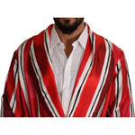 Dolce & Gabbana Red White Striped Silk Mens Night Gown Robe