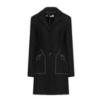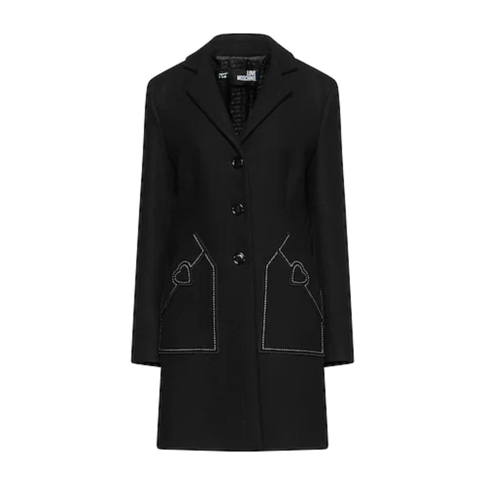 别致的羊毛混纺黑色大衣,配以爱心细节