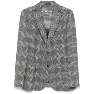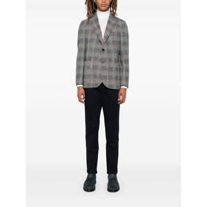 imperial blue/black/white cotton blend fleece texture Prince of Wales check pattern front button fastening notched lapels long sleeves faux-buttoned cuffs chest welt pocket dart detailing two front patch pockets English rear vents internal jetted pocket partial lining curved hem Cotton single-breasted jacket Size and Fit - This piece fits true to size. We recommend you get your regular size. Model is 1,84m / 6ft 1in wearing size 48 (IT)