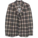 anthracite grey/barley brown cotton blend fleece texture plaid check pattern front button fastening notched lapels long sleeves faux-buttoned cuffs chest welt pocket dart detailing two front patch pockets English rear vents internal jetted pocket partial lining curved hem Cotton single-breasted jacket Size and Fit - This piece fits true to size. We recommend you get your regular size. Model is 1,84m / 6ft 1in wearing size 48 (IT)