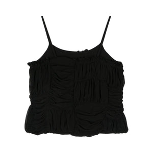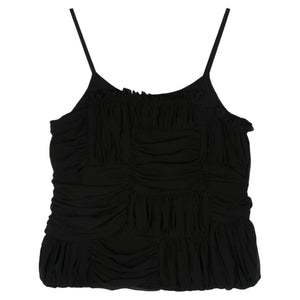 black pleat detailing draped detailing ruffled detailing round neck spaghetti straps sleeveless partial lining concealed rear hook and zip fastening Ruffled top Size and Fit - This piece fits true to size. We recommend you get your regular size. Model is 1,75m / 5ft 8in wearing size S