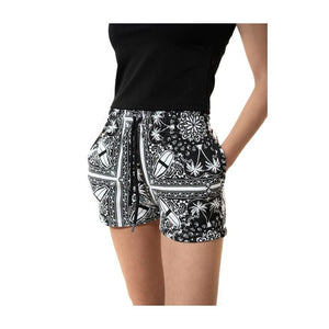 Embrace effortless style with Comme Des Fuckdown’s women’s cotton shorts, featuring a striking black and white palm and abstract pattern. These shorts promise both comfort and fashion, crafted with an adjustable drawstring waist and convenient side pockets for your essentials. Perfect for those who appreciate a blend of casual luxury and artistic flair, these shorts are a testament to Italian craftsmanship.