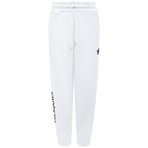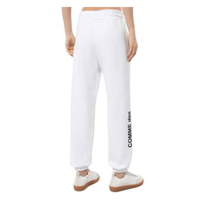 Elevate your streetwear game with these edgy ‘Comme Des Fuckdown’ fleece pants. Crafted from premium cotton for ultimate comfort, these pants feature a bold drawstring waist and snug elasticated ankles for a perfect fit. Adorned with the unmistakable logo prints on the front, they come with two practical side pockets. A flawless blend of comfort and rebellion, these white trousers are an unapologetic statement piece.