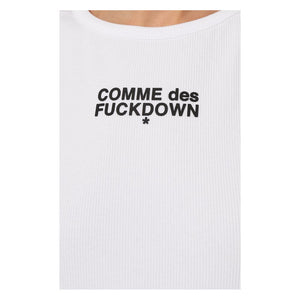 Step into audacious style with Comme Des Fuckdown’s white rib tank top, a fearless fashion statement that encapsulates the brand’s provocative spirit. With its striking rubber logo print, this top is designed to make a bold impact while affirming your trendsetting status. Crafted in Italy, the blend of cotton and elastane promises a flattering fit with just the right amount of stretch.