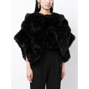 fur-design cropped blouse from COMME DES GARÇONS featuring black, faux-fur design, round neck, wide sleeves, half-length sleeves, straight hem and cropped. Faux fur cropped jacket Size and Fit - This piece fits true to size. We recommend you get your regular size. Model is 1,75m / 5ft 8in wearing size S