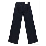 High Waist Jeans with Wide Leg Coperni. Cotton, dark blue, button and covered zipper fastening, five pockets and white leather tag with contrasting logo applique on back.