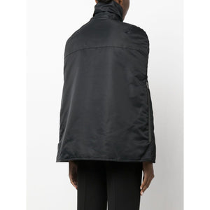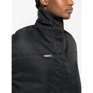 logo-patch bomber cape from COPERNI featuring black, cape design, logo patch at the chest, funnel neck, concealed front fastening, two side zip-fastening pockets and straight hem. Logo bomber cape Size and Fit - This piece fits true to size. We recommend you get your regular size. Model is 1,75m / 5ft 8in wearing size 36 (FR)