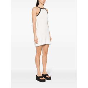 white/black cotton soft jersey halterneck contrasting border buckle-detail shoulder strap sleeveless appliqué logoat the chest internal logo tag thigh-length straight hem Buckle contrast short dress Size and Fit - This piece fits true to size. We recommend you get your regular size. Model is 1,75m / 5ft 8in wearing size S