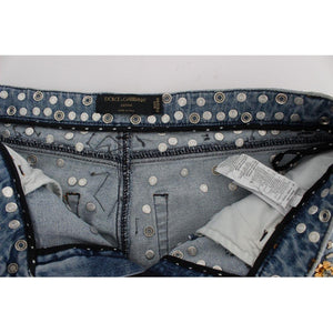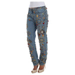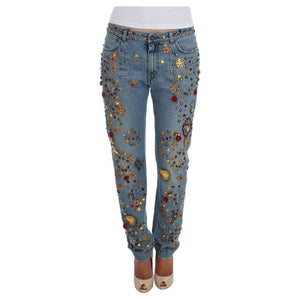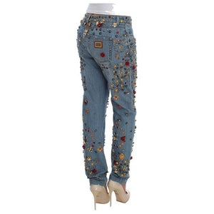 这款Dolce & Gabbana男友款牛仔裤散发着迷人的西西里气息,让您尽情享受意大利工艺的魅力。这款牛仔裤采用浅蓝色水洗工艺,饰有一系列耀眼的水晶,形成一颗心和一朵玫瑰,是奢华风格的典范。细致的金色和银色金属细节增强了奢华感,使其成为您衣柜中的独家单品。非常适合那些珍视稀有发现和独一无二的时尚宣言的人。