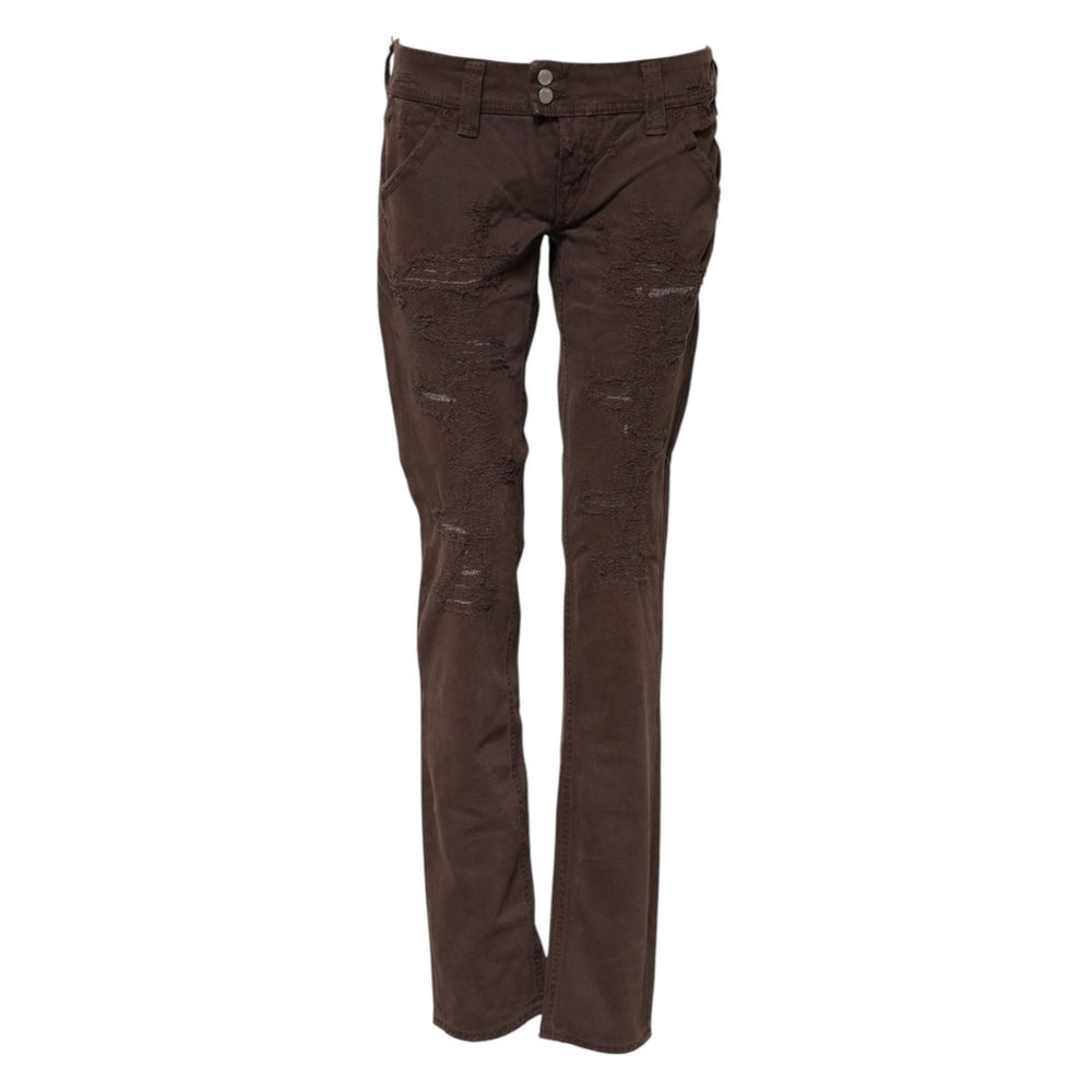 CYCLE Brown Cotton Low Waist Skinny Casual Jeans