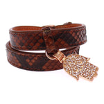 介绍 Nialaya 手链 - 精致和粗犷优雅的体现。这款精心手工制作的饰品,配有蛇皮表带和奢华的玫瑰金 18K 镀金 925 纯银装饰,是时尚的缩影。这款令人惊叹的手链饰有透明 CZ 钻石和 Hamsa Eye,后者被认为是抵御负能量的象征,可为您的手腕增光添彩。它不仅仅是一种时尚宣言,更是名人的最爱,旨在瞬间提升您的外观。它在美国好莱坞精心打造,是引领潮流的卓越配饰。