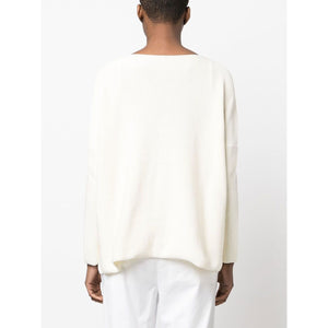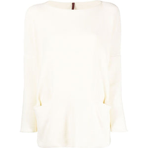 open pocket boat neck jumper from DANIELA GREGIS featuring ivory white, cotton, knitted construction, boat neck, two front patch pockets, drop shoulder and long sleeves. Cotton boat neck sweater Size and Fit - This piece fits true to size. We recommend you get your regular size. Model is 1,75m / 5ft 8in wearing size UNI