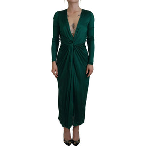 Dolce & Gabbana Dark Green Viscose Long Sleeve Midi Dress