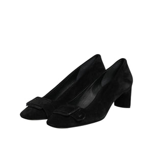 DEL CARLO Black Suede Leather Slip On High Heels Pump Shoes