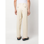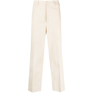 straight-leg cotton trousers from Department 5 featuring sand beige, cotton blend, belt loops, logo patch to the rear, straight leg, hook and zip fly fastening and two rear button-fastening jetted pockets. Wide leg trousers Size and Fit - This piece fits true to size. We recommend you get your regular size. Model is 1,84m / 6ft 1in wearing size 32 (WAIST CM)