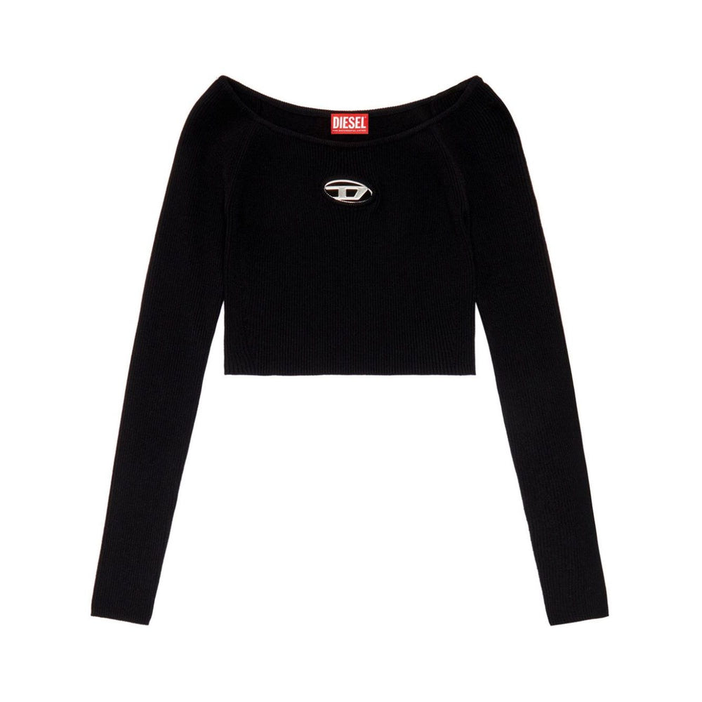 black FSC viscose silver-tone logo plaque cut-out detailing boat neck long sleeves straight hem Conscious: This product contains cellulosic-based material sourced from sustainably managed forests. Learn more about what makes a product Conscious on our Conscious Criteria page Oval-D top Size and Fit - This piece fits true to size. We recommend you get your regular size. Model is 1,75m / 5ft 8in wearing size S