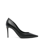 black calf leather smooth grain 95mm high stiletto heel gold-tone logo plaque pointed toe branded leather insole leather sole Leahter pumps Size and Fit - Heel 3,5 in / 9 cm