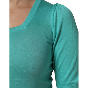 Dolce & Gabbana Aqua Blue Silk Short Sleeves Square Neck Top